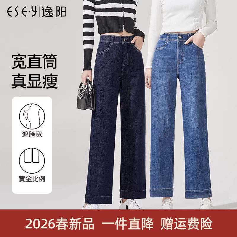 逸阳女裤2026春季新款韩版高腰大码宽松舒适直筒裤九分阔腿牛仔裤