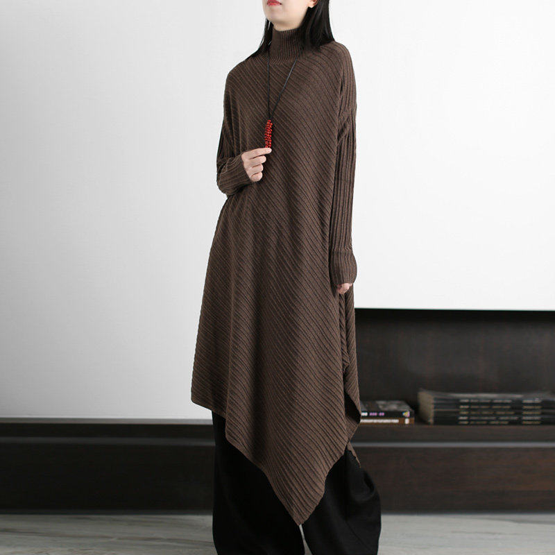 兮风品牌简约不规则毛衣裙春秋半高领纯色羊毛打底裙禅意显瘦套装