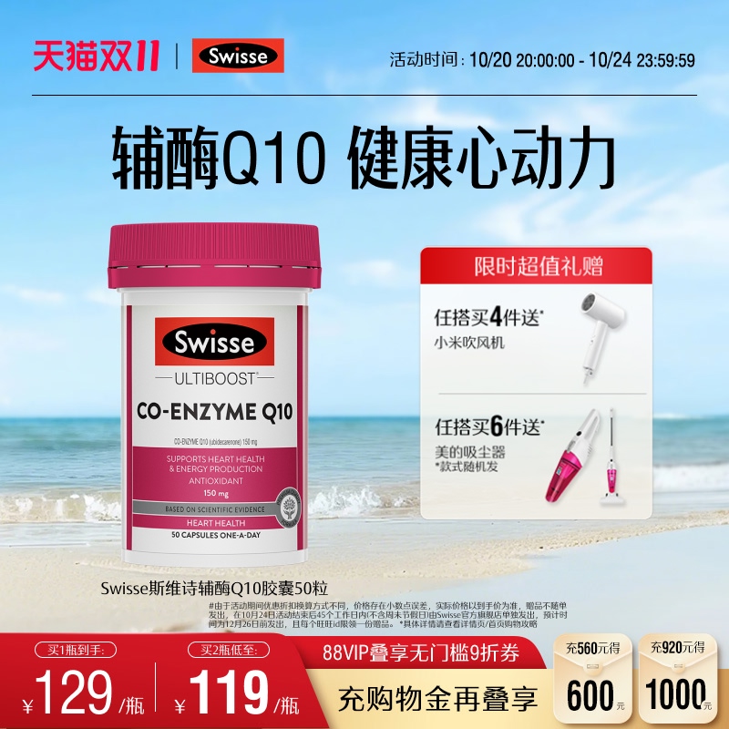 Swisse斯维诗辅酶q10软胶囊50粒CoQ10心血管心脏心肌进口官方保护