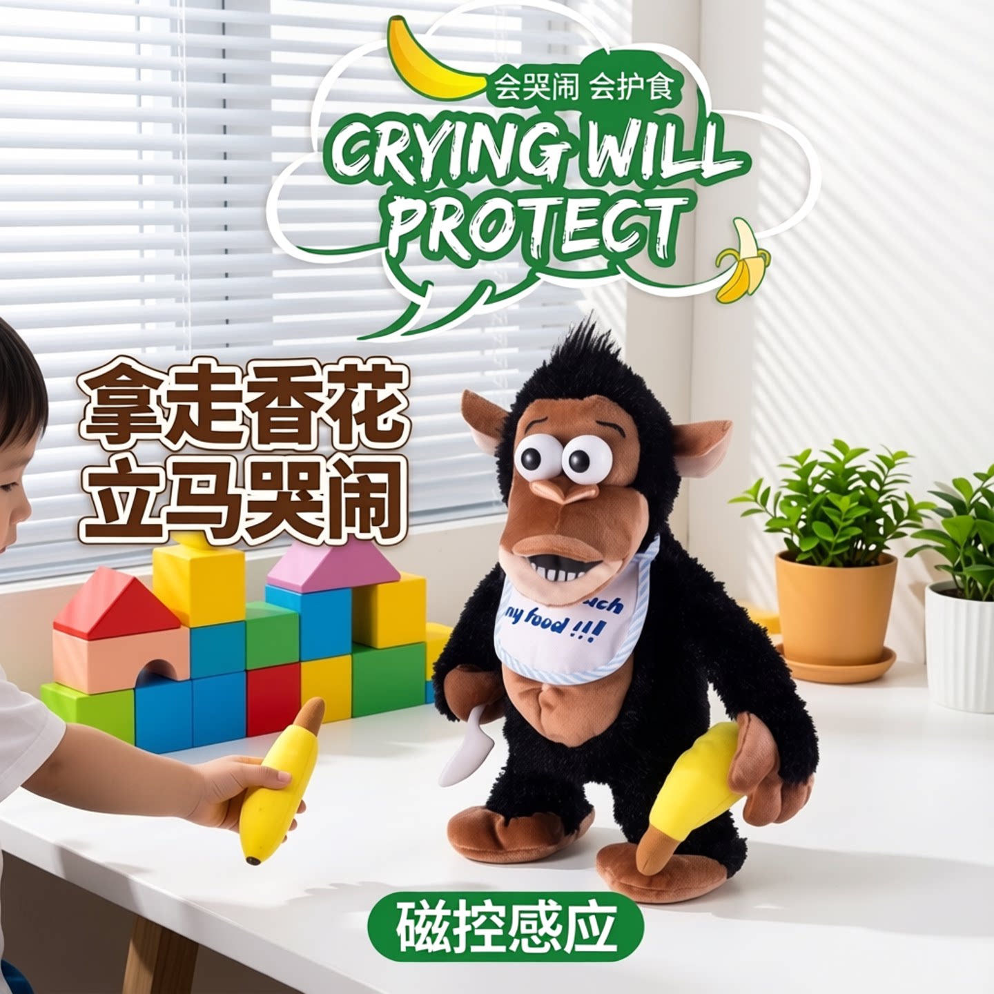 儿童电动毛绒玩具猩猩磁控猴子香蕉拿掉会发狂哭闹搞笑小玩偶公仔