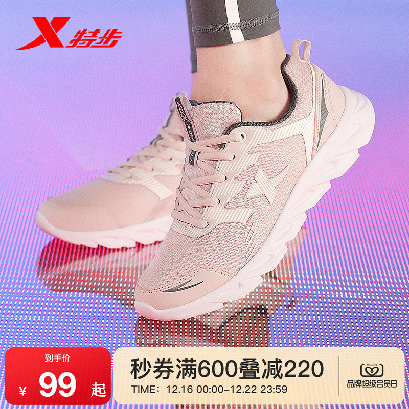 特步运动鞋女鞋冬季新款网面轻便皮面防泼水软底妈妈减震跑步鞋男