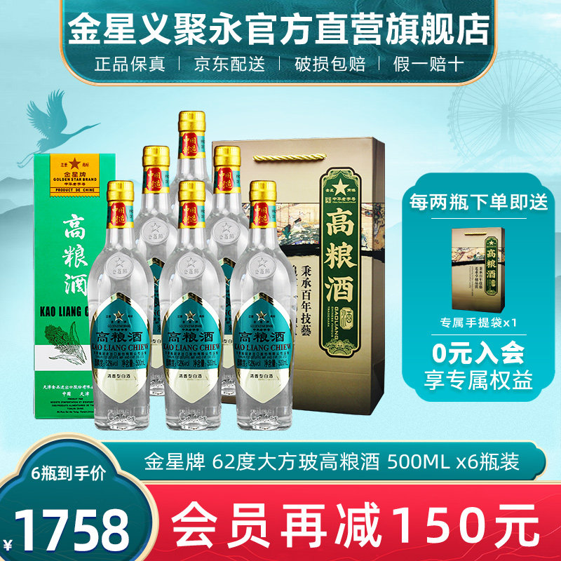 金星牌高粱酒大方玻62度清香型高度礼盒装天津特产整箱装白酒