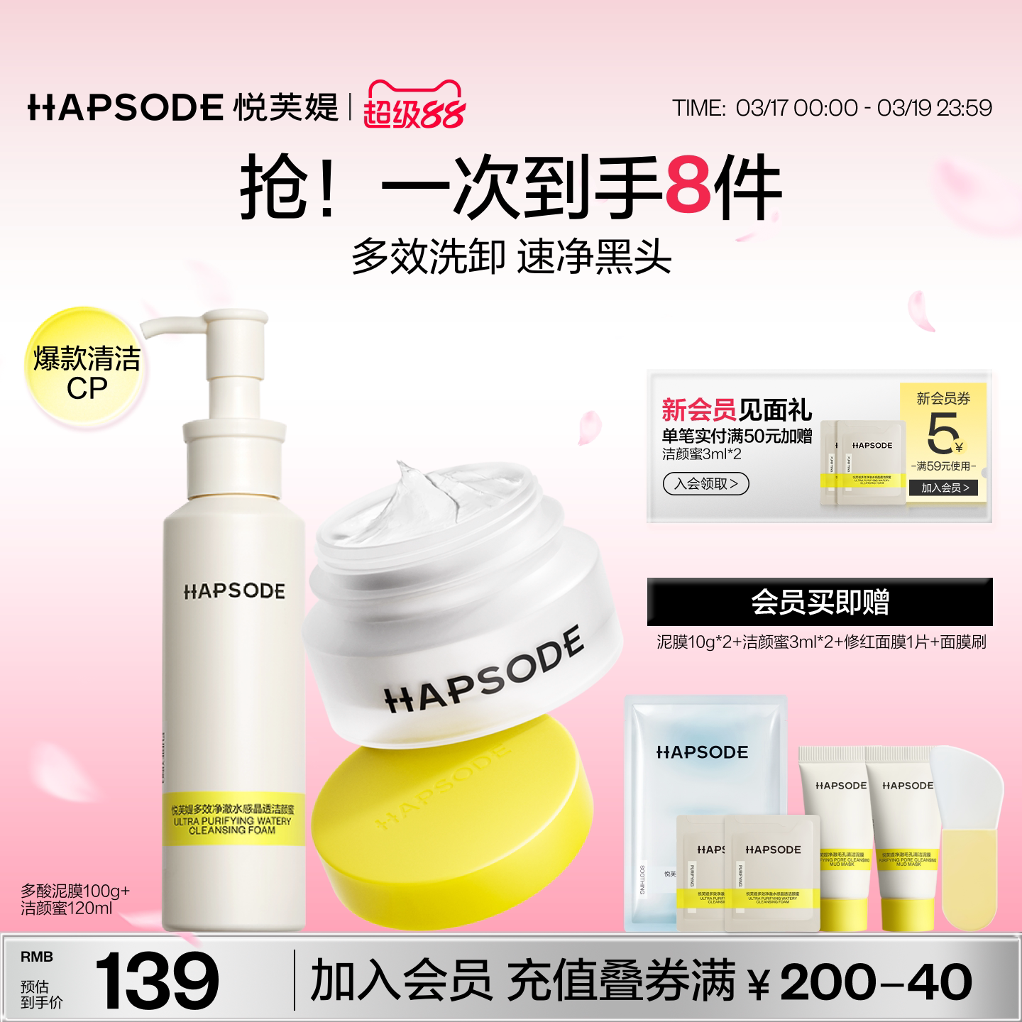 悦芙媞洁颜蜜多酸泥膜去黑头控油氨基酸洗面奶油皮深层清洁套装