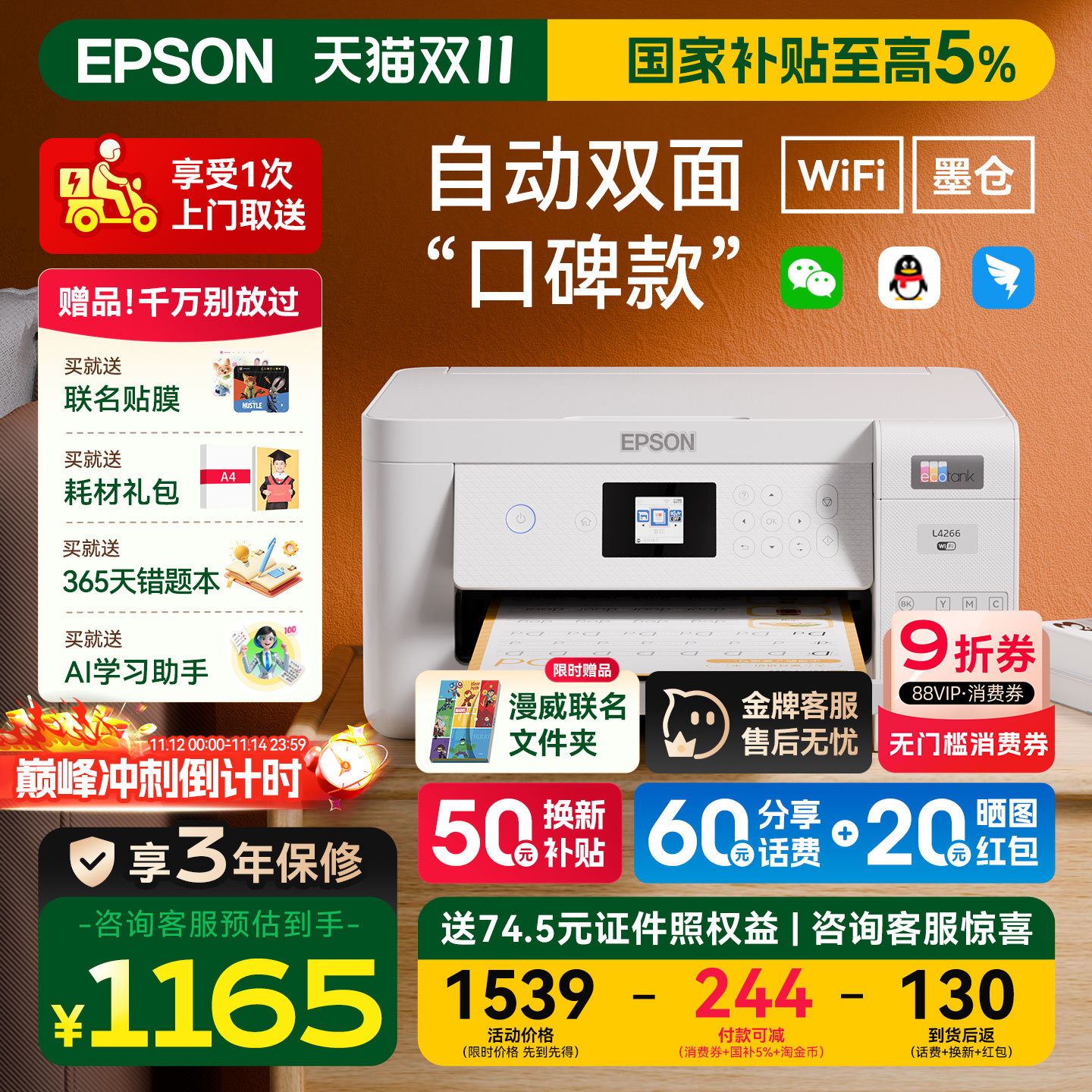【政府补贴20%】爱普生墨仓式打印机自动双面家用小型L4266/4268/426