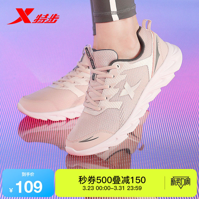 特步运动鞋女鞋夏季新款透气网面轻便休闲软底妈妈减震体育跑步鞋