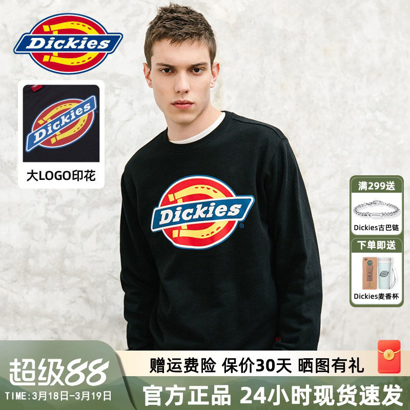 • 泡美丽»»Dickies潮牌圆领印花情侣卫衣女秋冬套头纯棉上衣男透气舒适7059