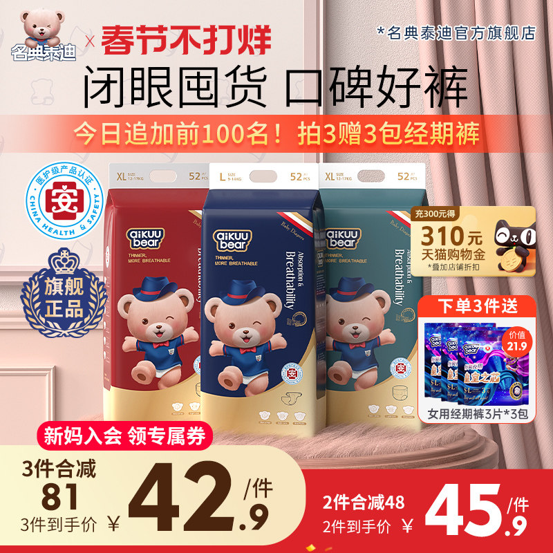 名典泰迪拉拉裤超薄透气纸尿裤男女宝宝专用新生婴儿尿不湿官方级