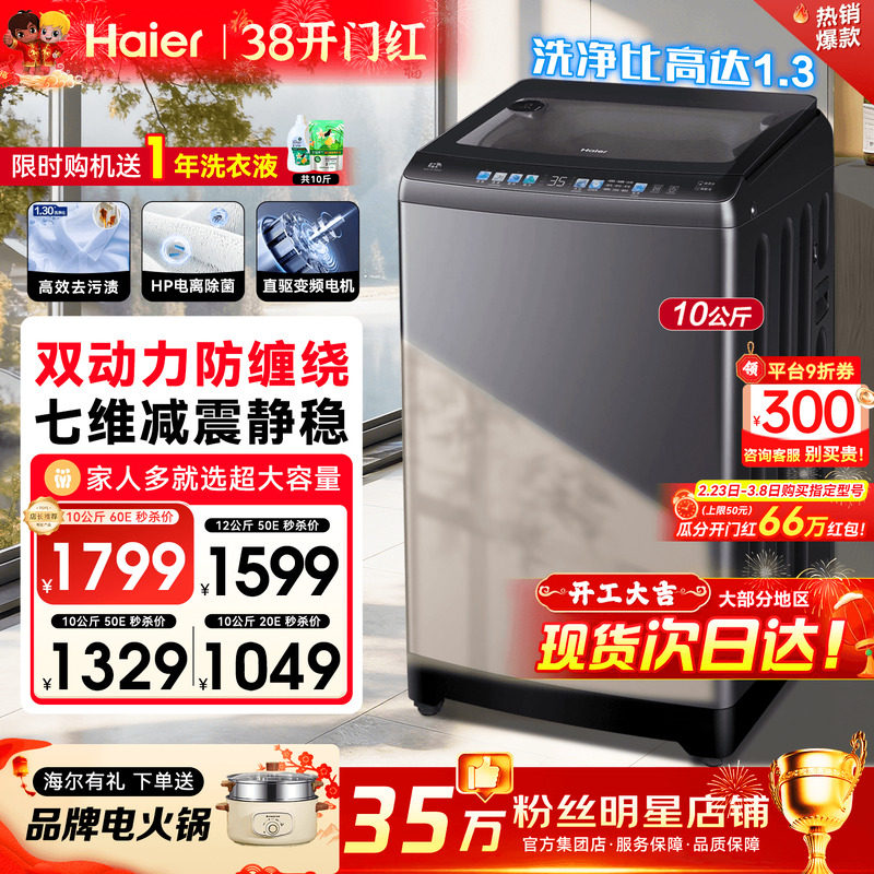 【手搓洗防缠绕】海尔洗衣机60E家用10kg全自动直驱波轮50E旗舰店