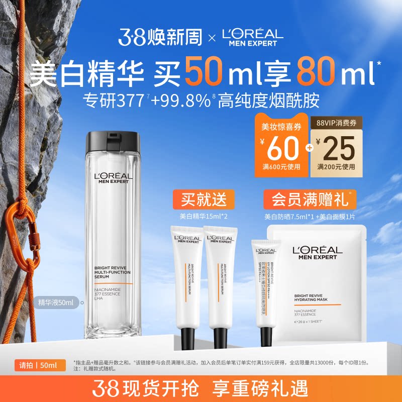 【38立即抢购】欧莱雅男士耀白瓶精华液美白淡痘印淡斑提亮护肤品