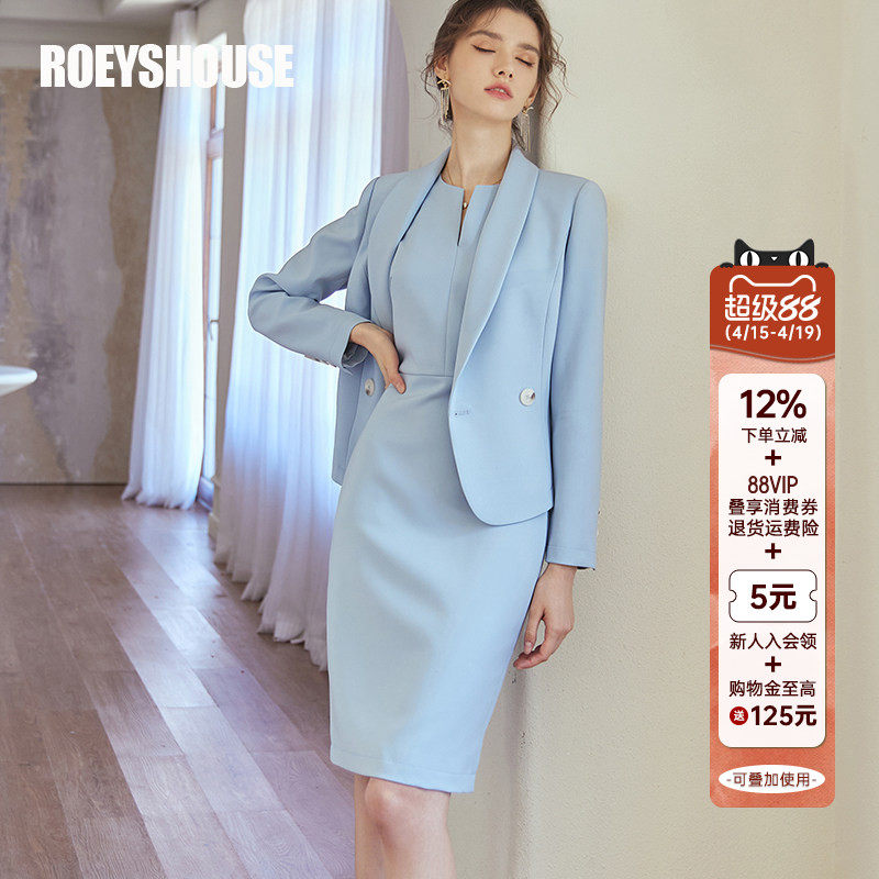 罗衣时尚白领西装套装女春季知性通勤OL风外套连衣裙两件套07233