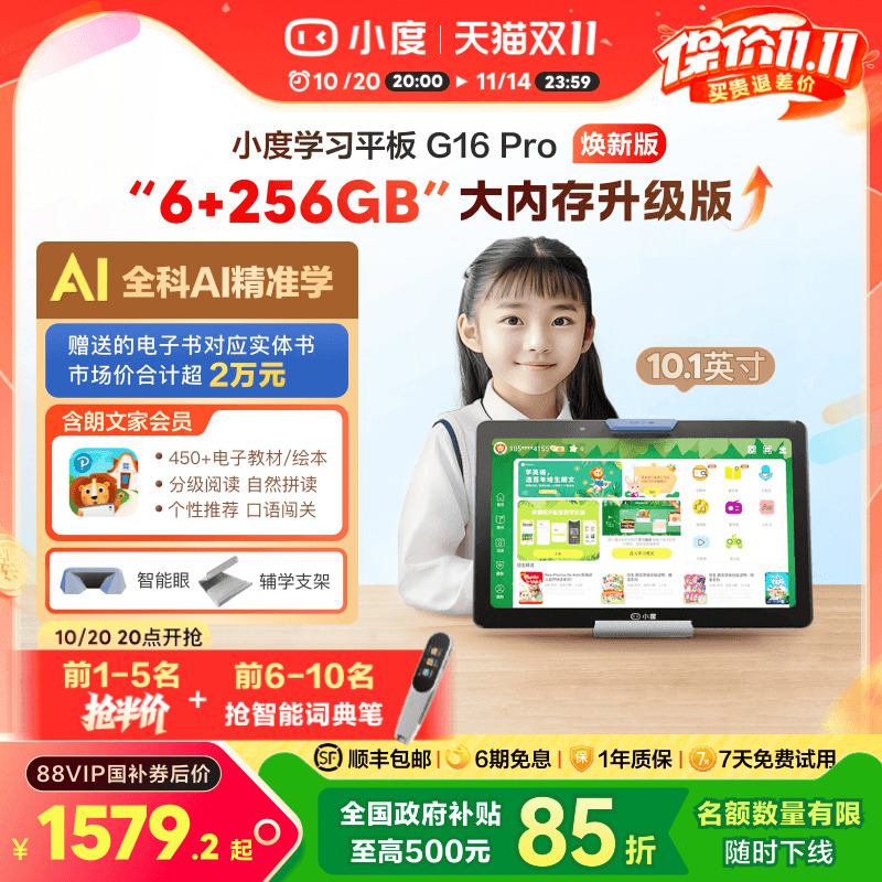 【全国补贴15%】小度智能学习平板G16 Pro 焕新升级内存AI小度学习机一年