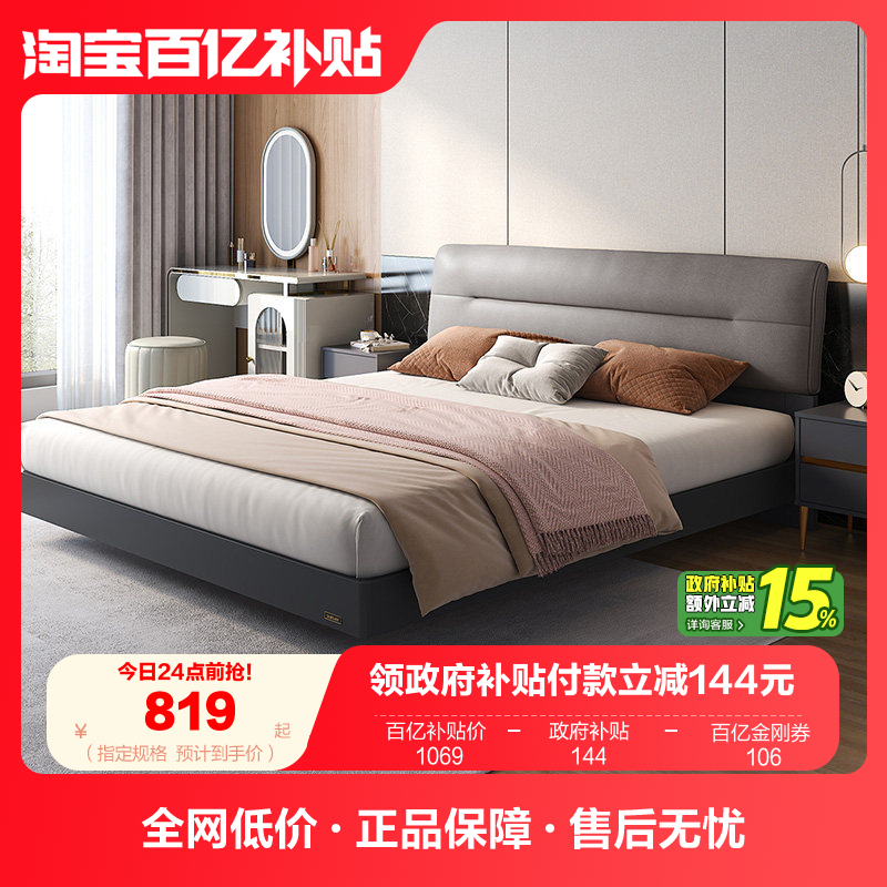 全友家居现代简约软包板式床1米8主卧床收纳储物床轻奢双人大床
