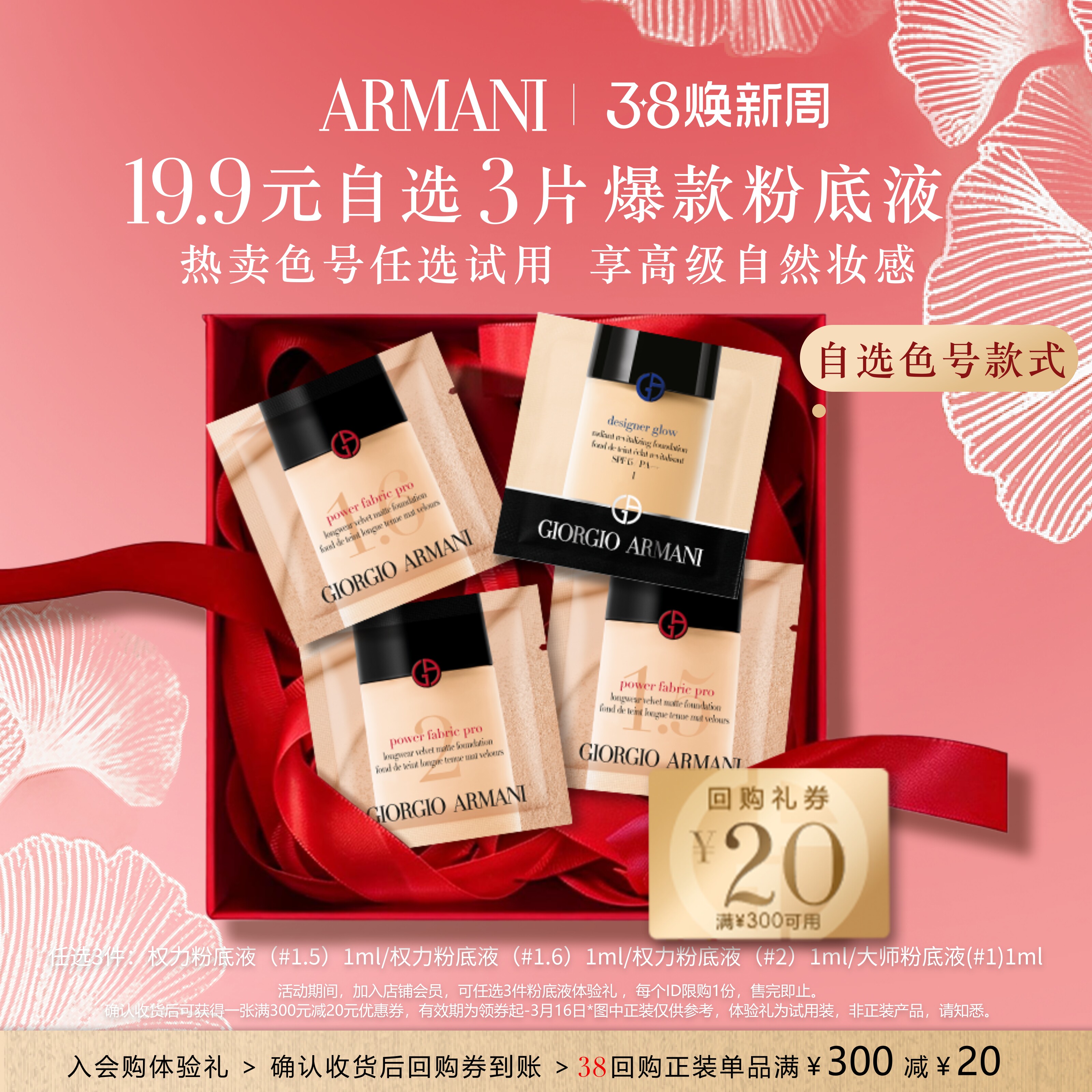 【19.9任选3件加购付款】阿玛尼权力大师粉底液体验 享20元回购券
