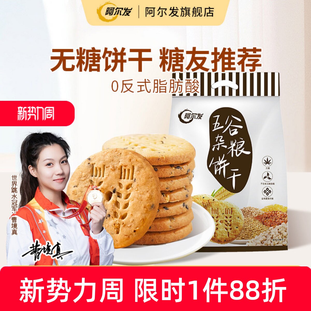 阿尔发五谷杂粮燕麦粗粮食品饼干木糖醇全麦糖尿人无糖零食礼盒