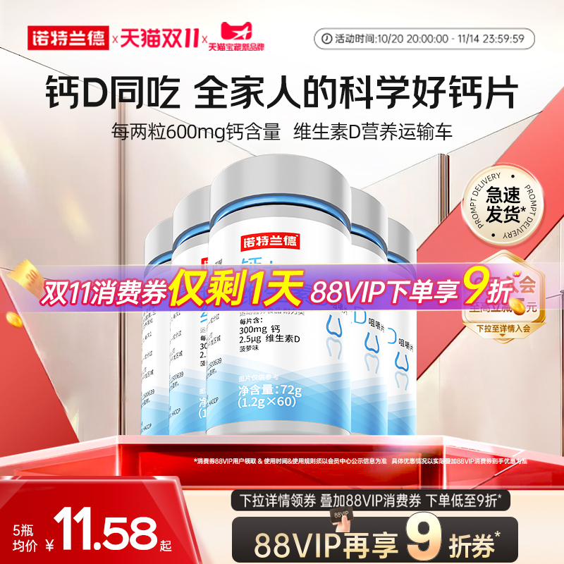 诺特兰德钙片维生素d咀嚼片青少年碳酸钙补男女性中老年非液体钙