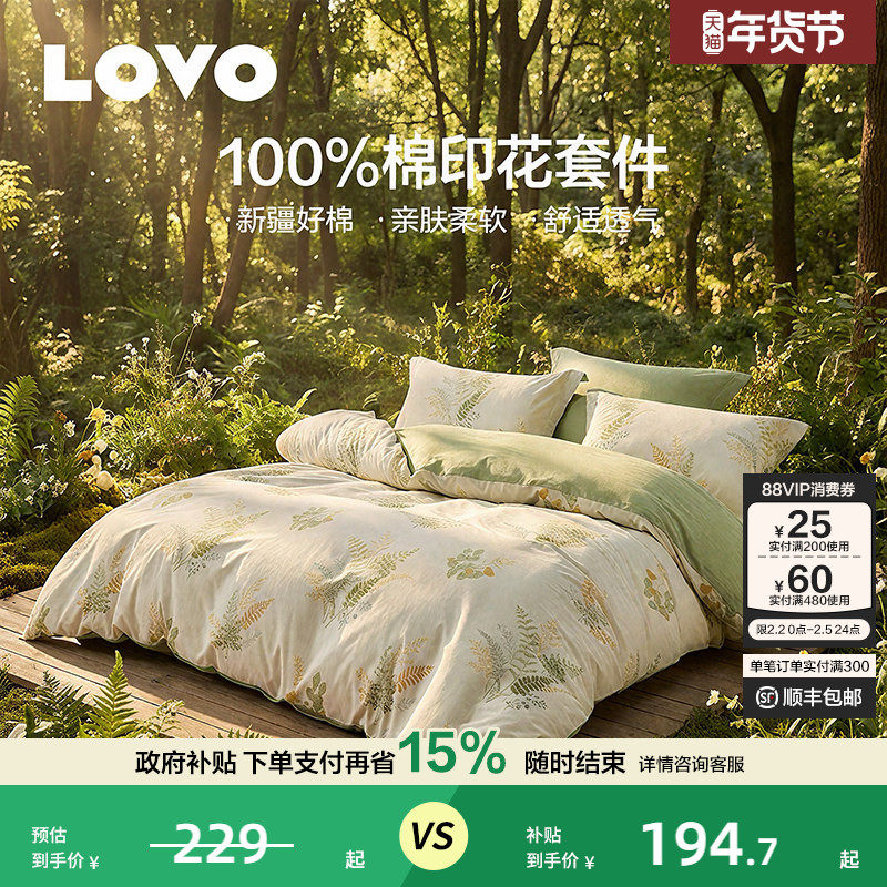 罗莱家纺LOVO乐蜗床单床上四件套床品100棉全棉纯棉被套学生宿舍