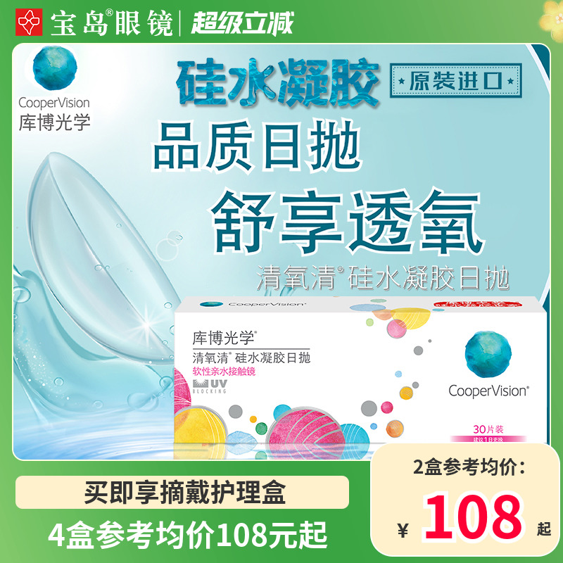 库博光学清氧清日抛30片硅水凝胶透明隐形近视眼镜进口旗舰店正品