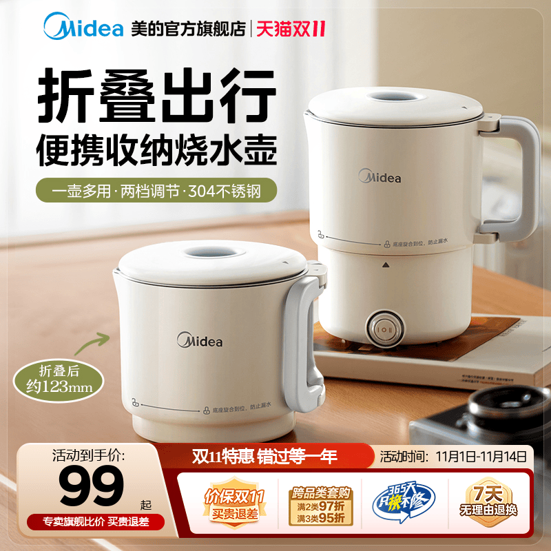 美的折叠水壶便携式小型烧水壶旅行恒温电热水壶家用保温一体新款
