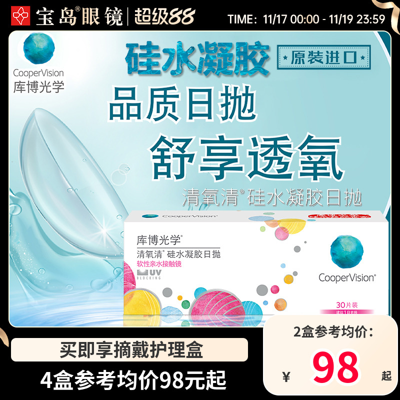 库博光学清氧清日抛30片硅水凝胶透明隐形近视眼镜进口旗舰店正品