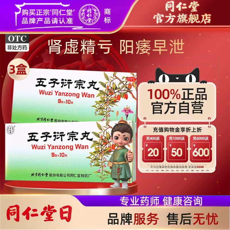 3盒同仁堂五子衍宗丸正品阳痿早泄五子衍宗丸大蜜丸官方旗舰店