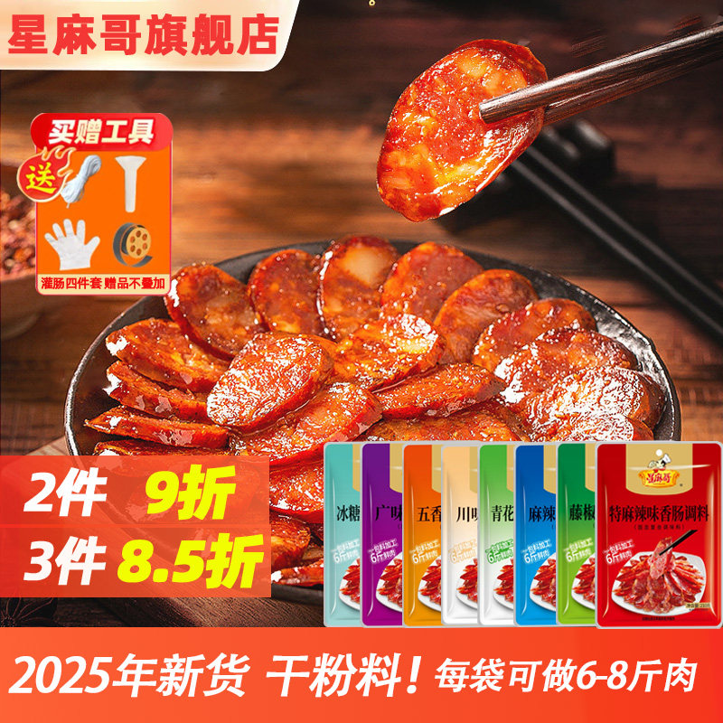 星麻哥香肠调料罐香肠调料四川麻辣广味五香专用灌肠料腌制料肠衣