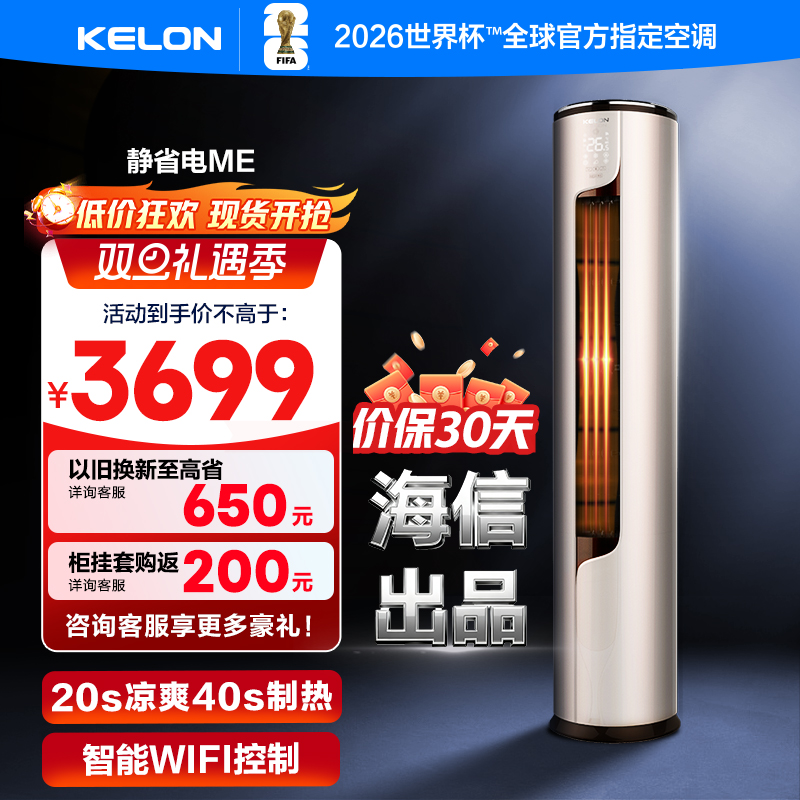 • 泡美丽»»科龙静享电空调大3匹柜机新一级变频节能省电立式家用客厅72ME1A1