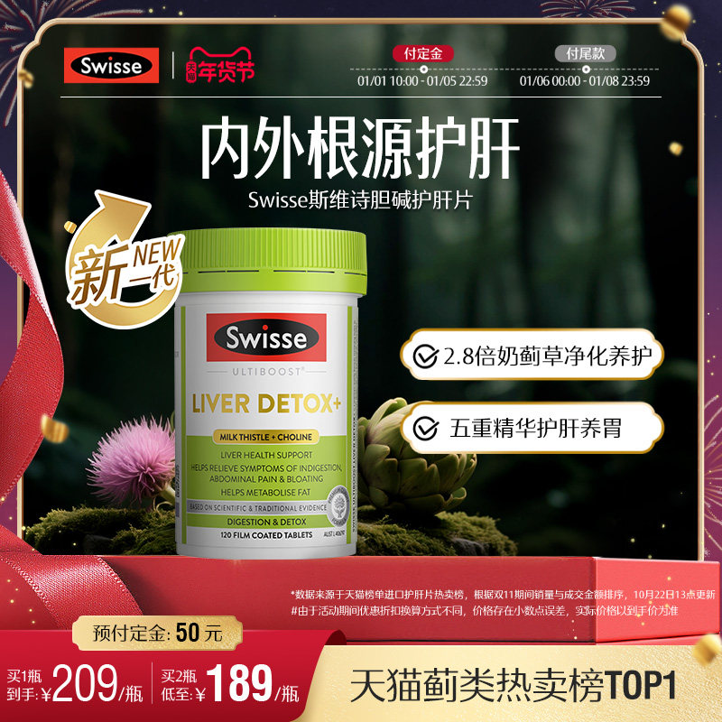 Swisse斯维诗护肝片男女奶蓟草120粒水飞蓟加班熬夜朝鲜蓟旗舰店