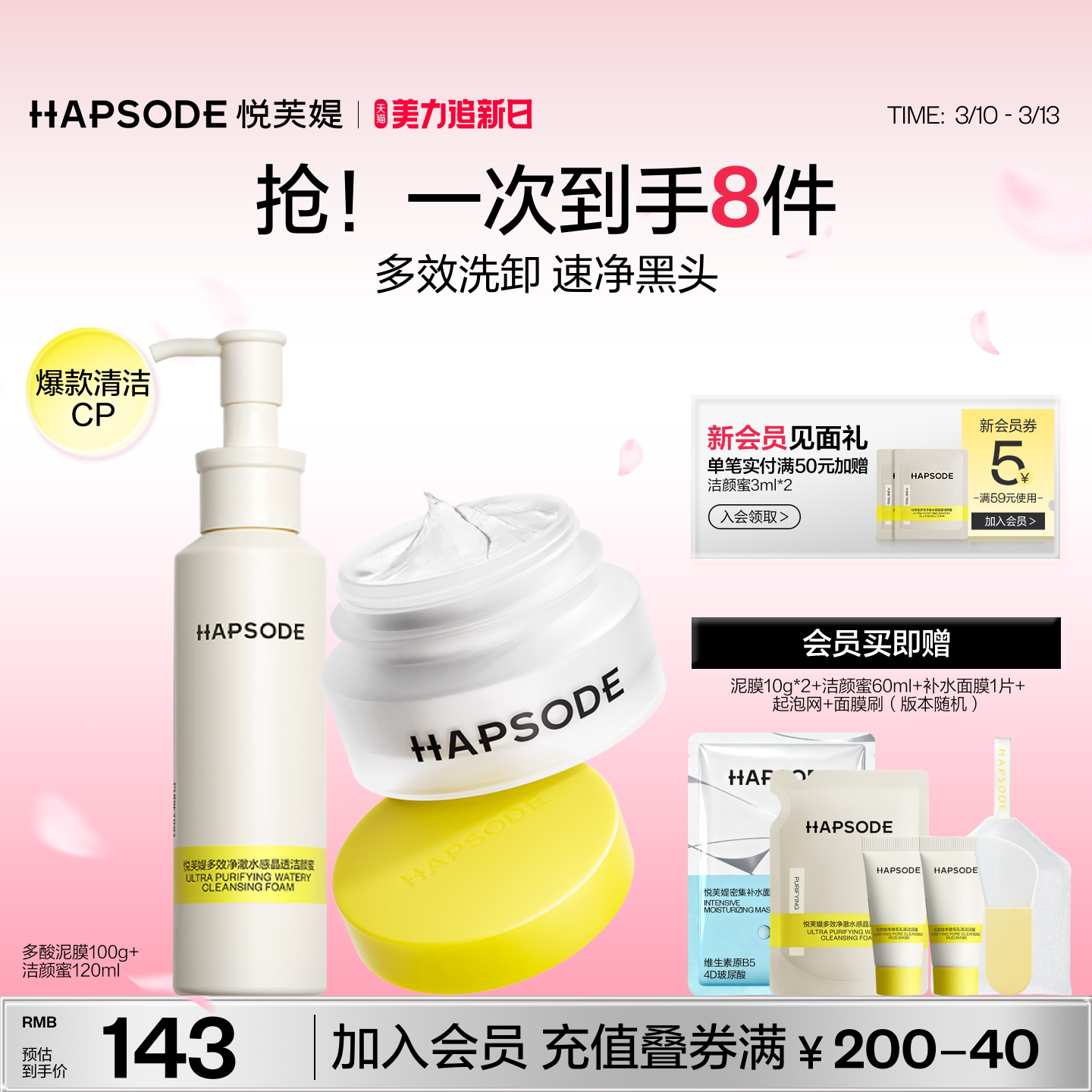 悦芙媞洁颜蜜多酸泥膜去黑头控油氨基酸洗面奶油皮深层清洁套装