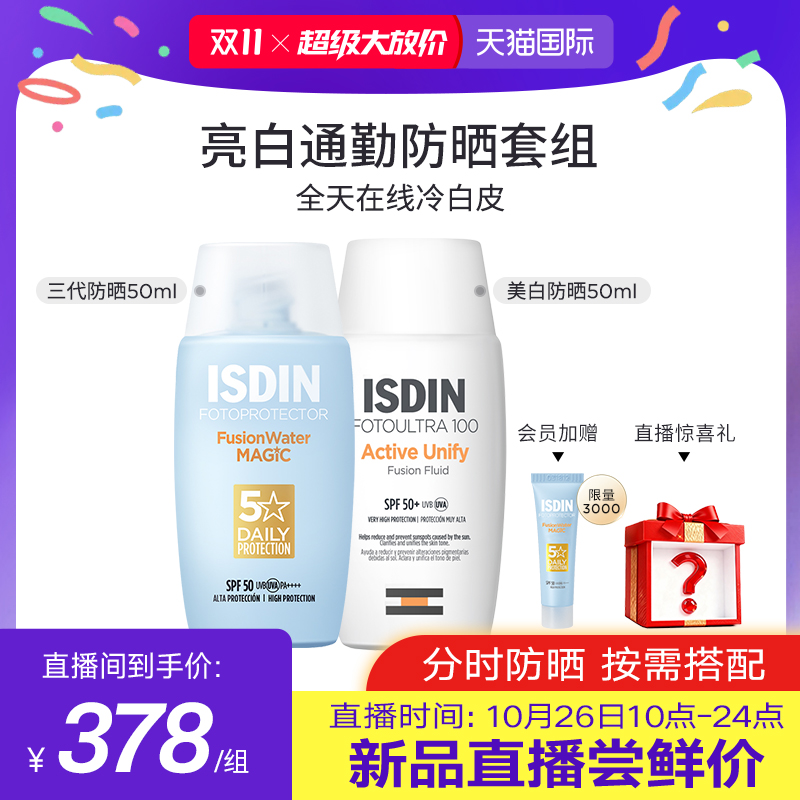 【自播间专享】ISDIN怡思丁囤货小蓝瓶防晒水美白防晒霜SPF50++++