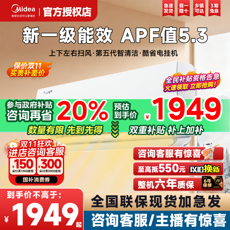 美的酷省电Pro空调家用一级卧室1.5匹2匹官方变频冷暖正品大挂机