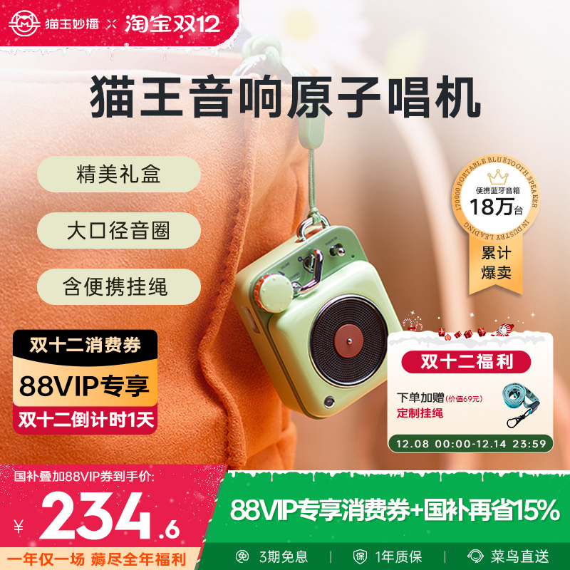 • 泡美丽»»猫王音响原子唱机B612蓝牙音箱小型迷你便携户外生日礼物