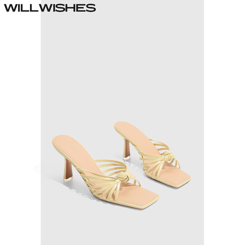 WILLWISHES 王玎设计女鞋2025夏季细跟凉鞋一字带高跟外穿拖鞋女
