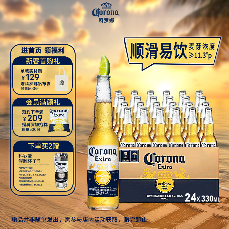 Corona/科罗娜11.3°P经典特级啤酒330ml*24瓶整箱批发清爽黄啤