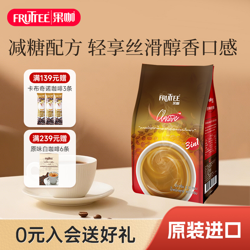 FRUTTEE果咖泰国进口三合一速溶咖啡经典原味减少糖醇香提神30条