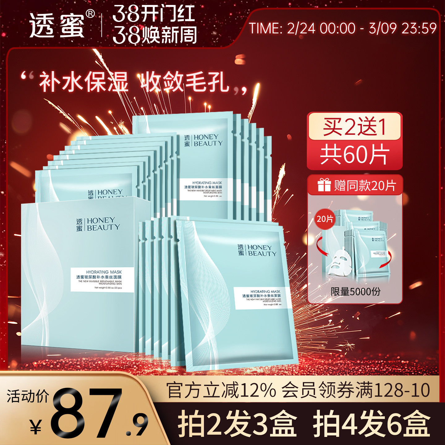 透蜜玻尿酸补水面膜保湿蚕丝收敛毛孔提亮肤色贴片式面膜旗舰店
