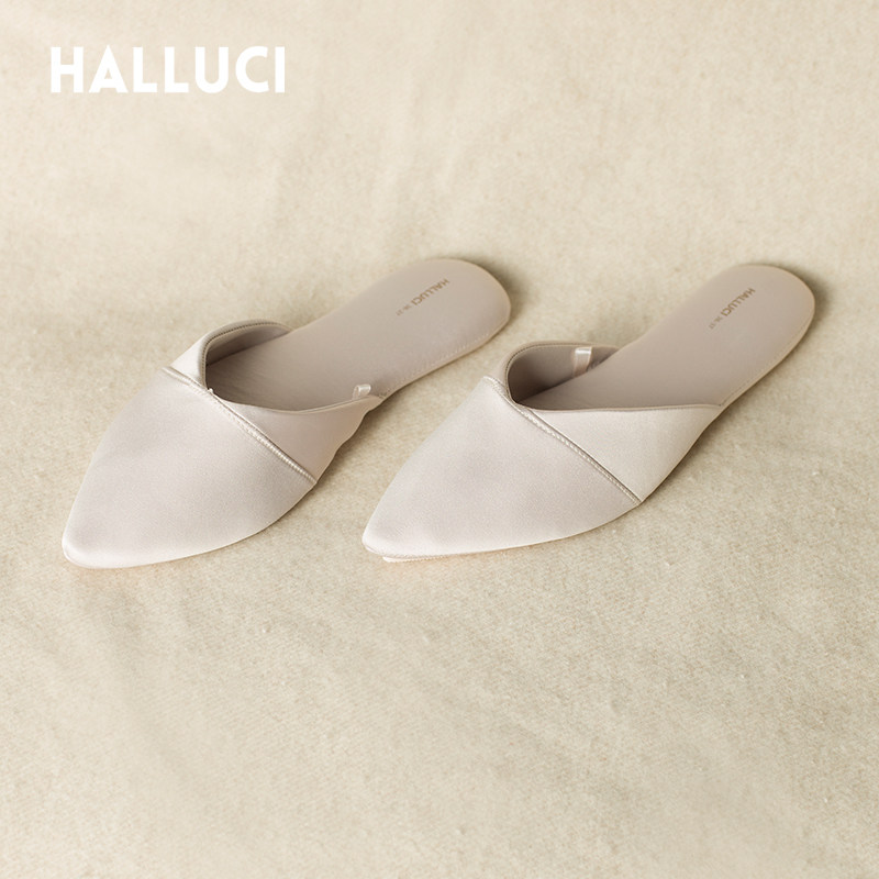 艺帛Halluci 奢华缎面居家拖鞋 结婚新娘晨袍鞋 尖头黑色