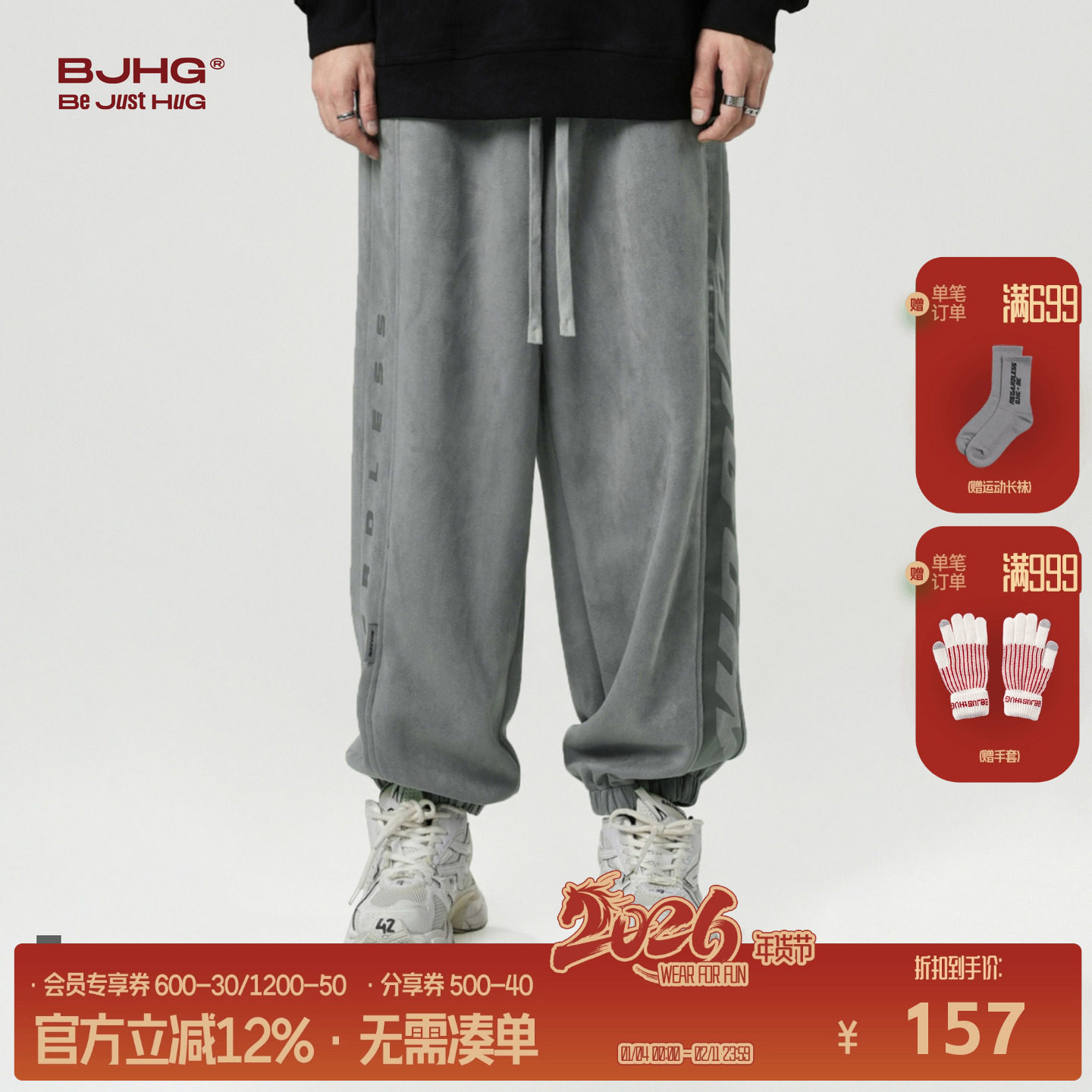 BJHG不计后果美式休闲裤子男款冬季新款直筒运动裤麂皮绒束脚卫裤