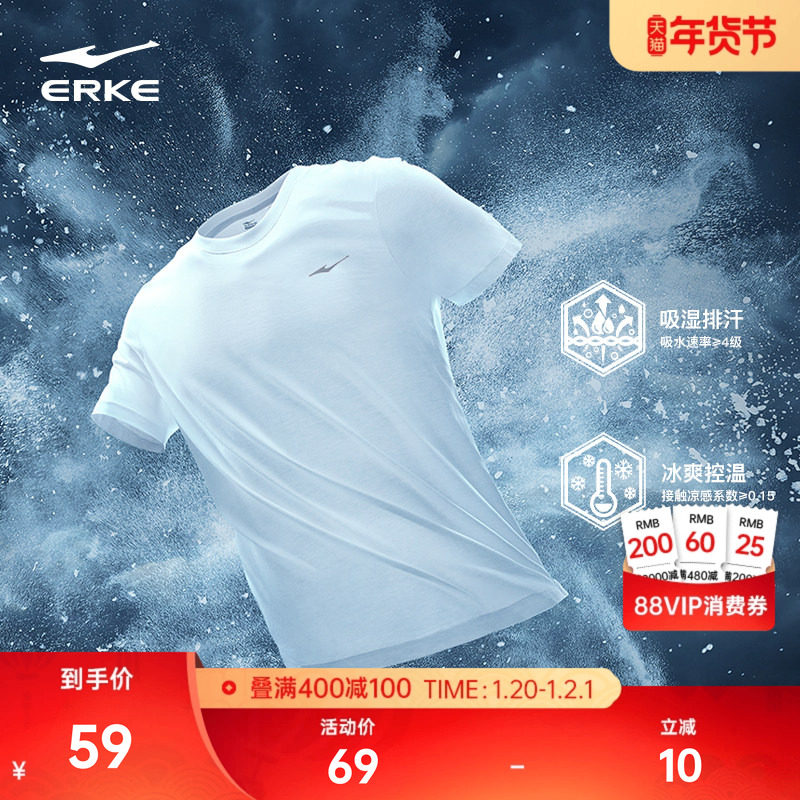 鸿星尔克速干短袖男夏季新款男士跑步冰丝速干衣t恤男生运动上衣