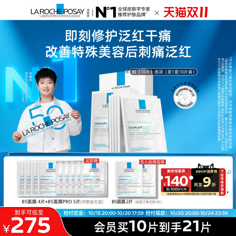 【双11立即预订】理肤泉B5面膜补水保湿紧急修护泛红舒缓敏感肌