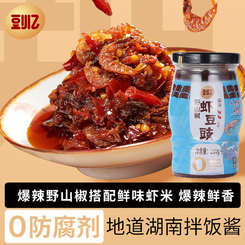 豆小乙野山椒虾米豆豉湖南辣椒酱拌面下饭菜香辣川味辣椒油拌饭酱