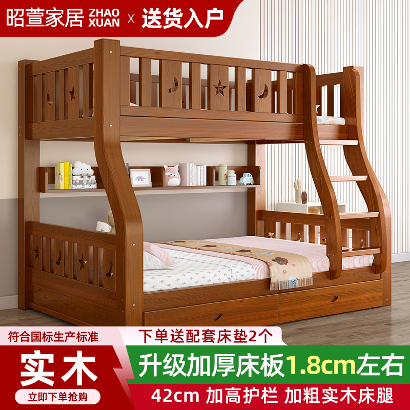 全实木子母床上下床双层床高低床多功能两层上下铺木床小孩儿童床