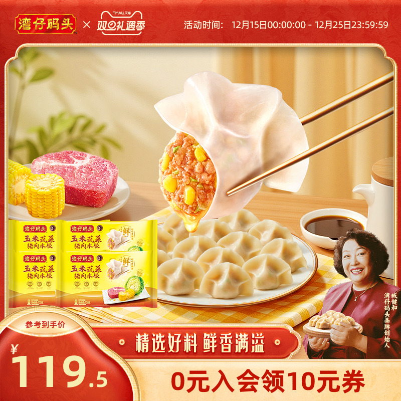 湾仔码头水饺玉米三鲜白菜猪肉720g*4袋煎饺早餐速冻饺子