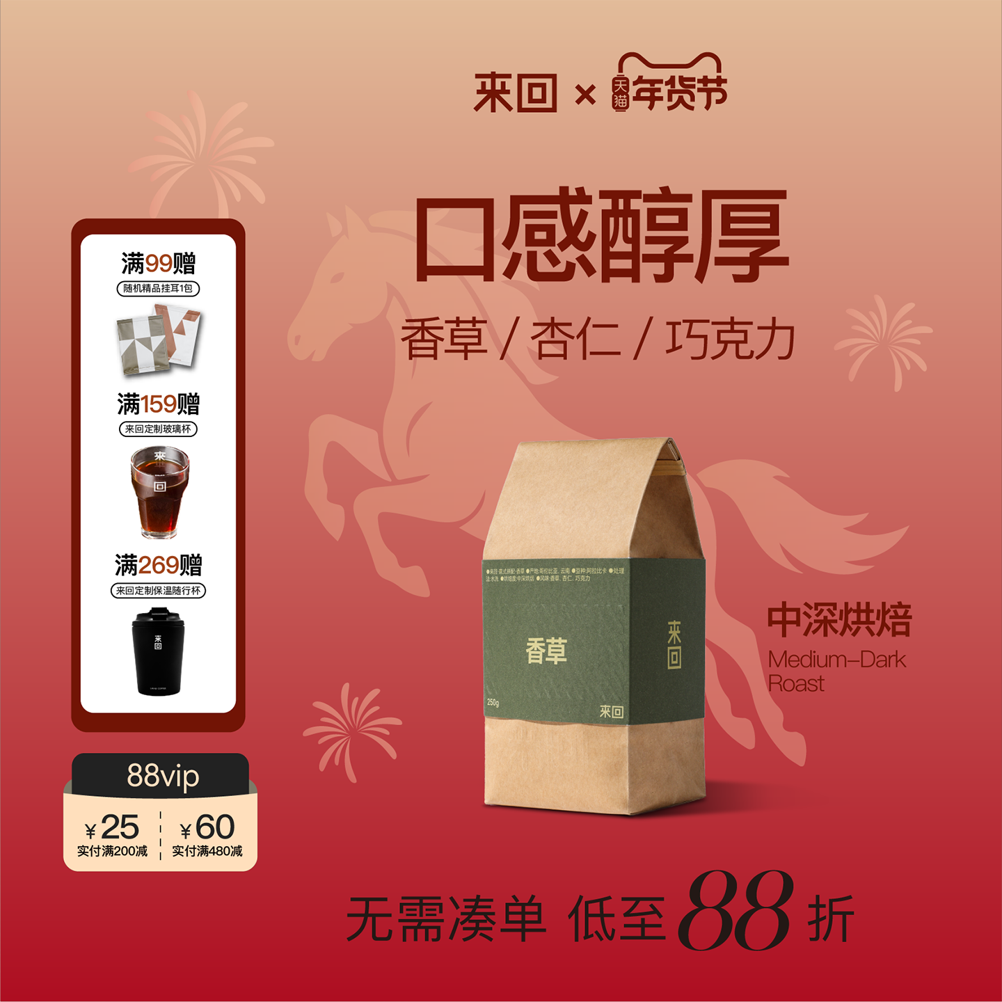 来回咖啡十年经典香草风味精品意式拼配咖啡豆中深烘焙商用咖啡粉