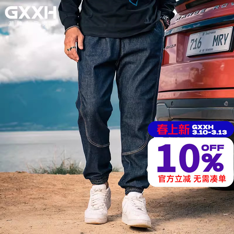 GxxH潮牌男装新款牛仔男士韩版潮流束脚休闲裤宽松大码工装哈伦裤