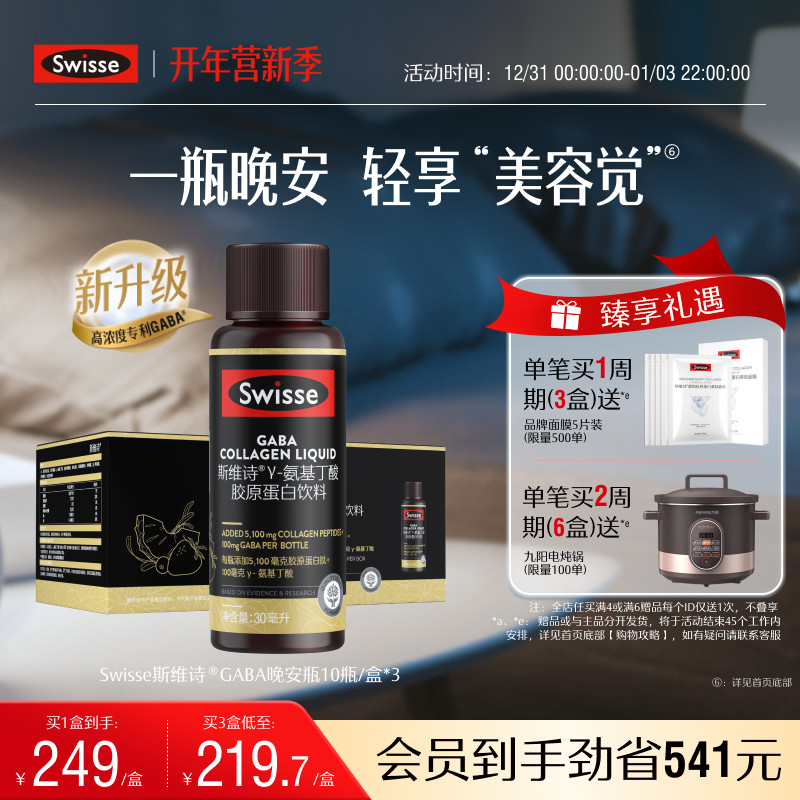【热巴推荐】Swisse斯维诗GABA晚安瓶胶原蛋白肽玻尿酸保健品饮品