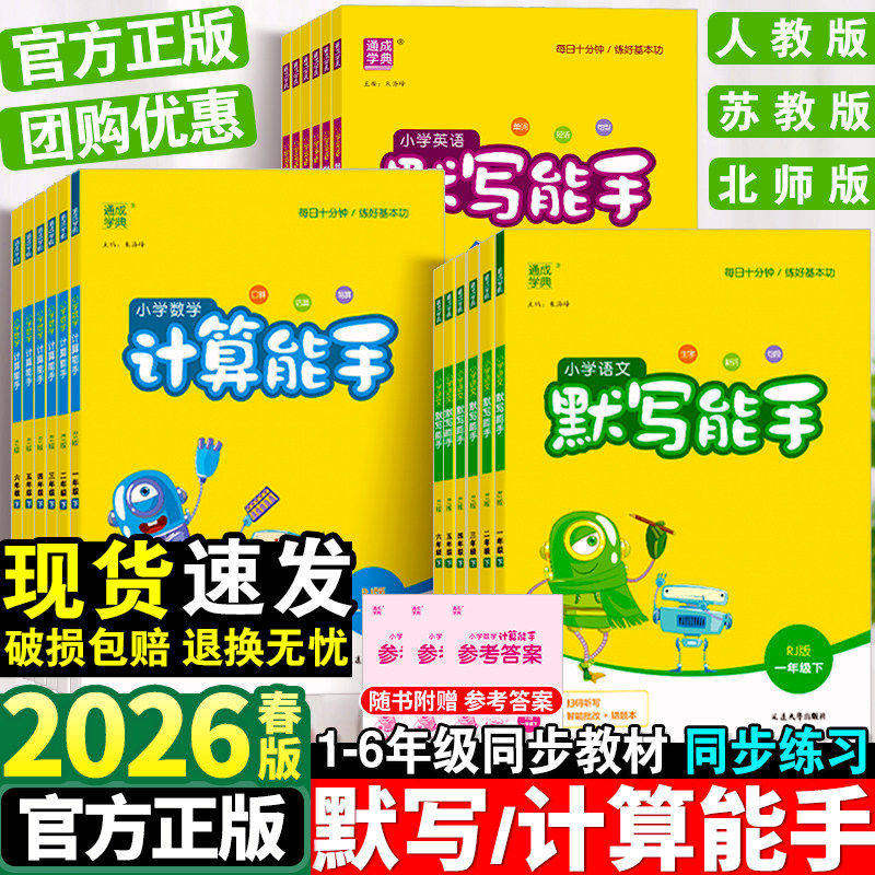 • 泡美丽»»2026默写能手一年级二年级三四五六年级上下册语文英语数学计算能手全套人教版小学