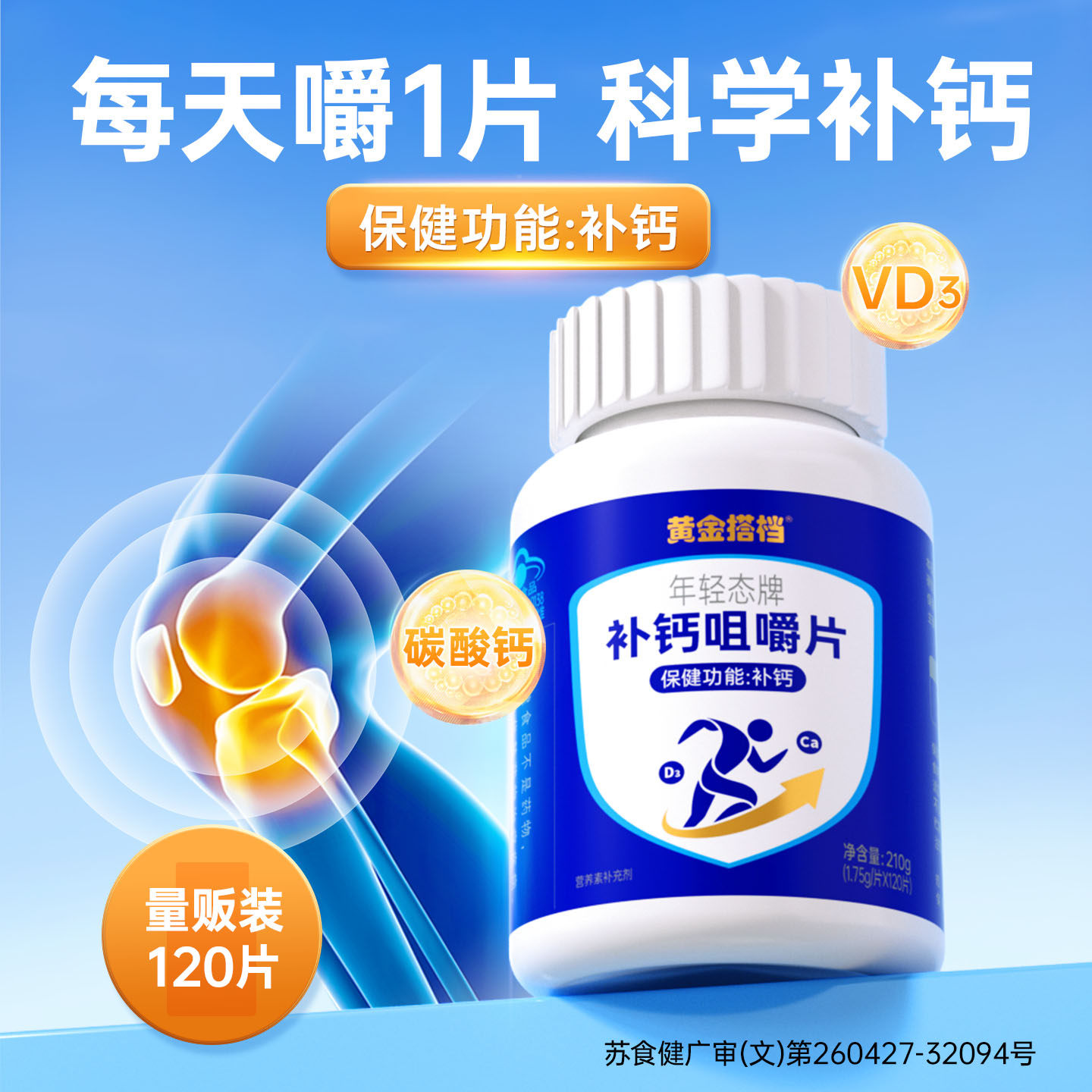 黄金搭档钙维生素D咀嚼片成人碳酸钙中老年孕妇乳母补钙液体钙D3