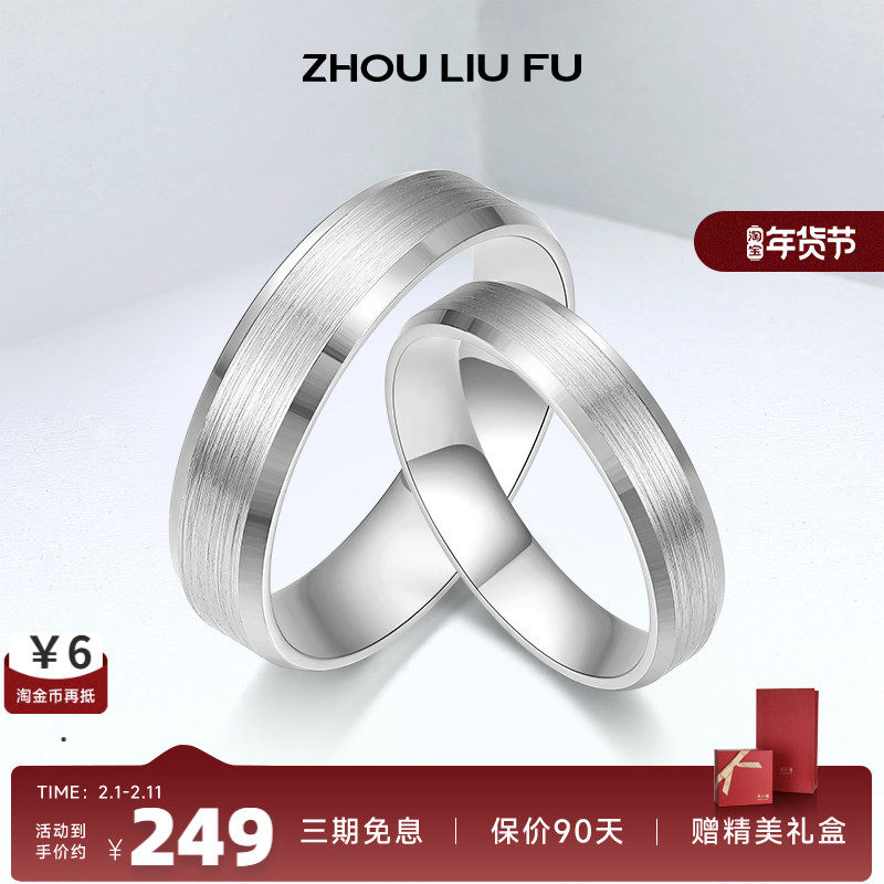 周六福S925纯银情侣一对戒指男女友款简约轻奢ins潮设计素圈礼物