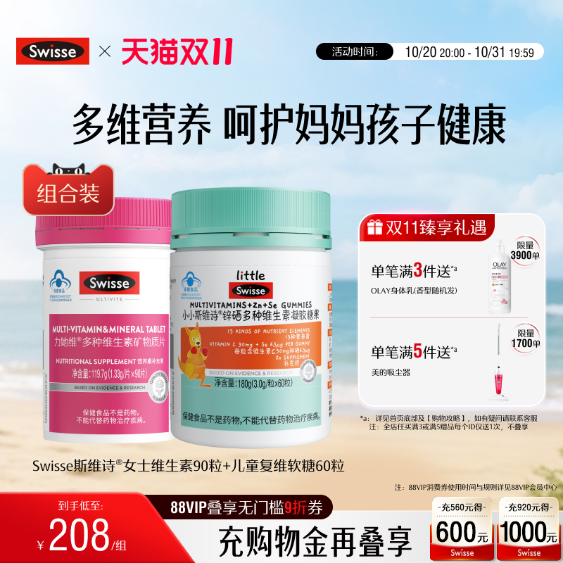 Swisse斯维诗儿童复合维生素补锌男女士维生素e维生素b免疫力官方