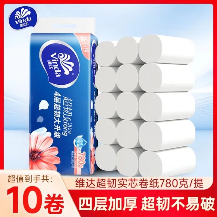 维达卷纸无芯4层10卷780克超韧大卷卫生纸家用提装厕纸卷筒纸
